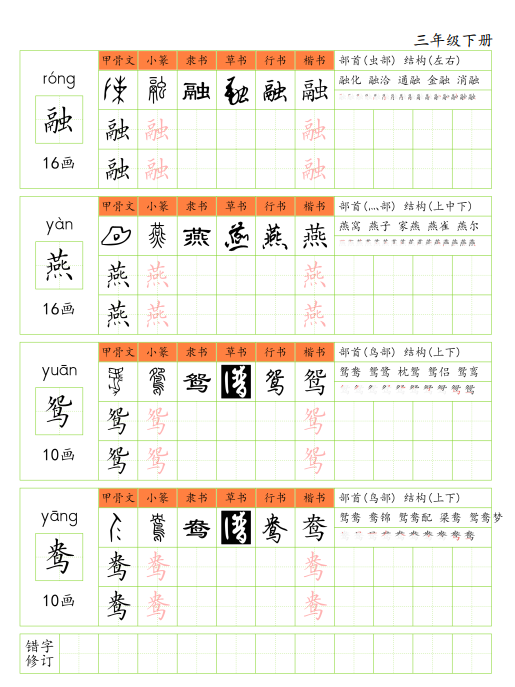 针对一年级上册到六年级下册的课后生字进行训练,搭配规范练习教材一起使用。